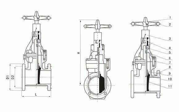 11 | 阀瓣 | 球墨铸铁+三元乙丙或丁腈橡胶 |