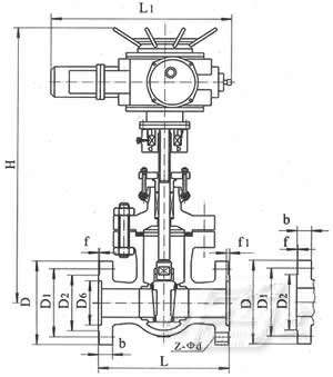 焊接闸阀 外形尺寸 国标电站(手动)