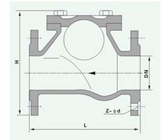 HQ41X滚球式球形止回阀采用橡胶包皮滚球为阀瓣,在介质的作用下,可在阀体内的整体式滑道上作上下左右滚动,从而打开或关闭阀门。消声式关闭,不产生水锤,密封性能好。阀体采用全水流通道,流量大,阻力小,水头损失比旋启式小50%。水平或垂直安装均可,可用于冷水、热水、工业及生活用水管网系统中,更适应用潜水排水污泵,介质温度为0~80℃。
